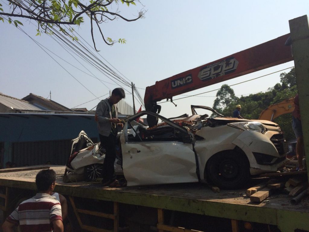 Kecelakaan mobil pribadi yang dikemudikan oleh Edy (45), seorang pengemudi jasa aplikasi online yang hendak mengantar langganannya Wandi (22), Fatmawati (40) dan Nanda Saputra (24) menuju ke pasar tanah abang harus terhenti setelah truk bermuatan tanah merah yang dikemudikan oleh SEJ (39) hilang kendali dan terguling menimpa mobil toyota sigra berplat nomer B 1932 COE.