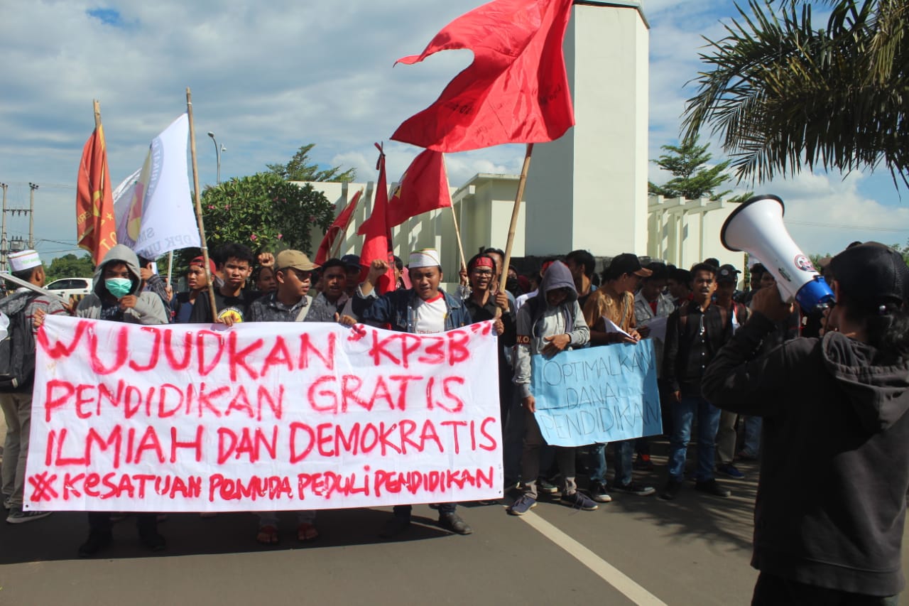 Demikian disampaikan oleh, Sekretaris Jendral (Sekjen) SWOT Kota Serang, Jejen, saat melakukan orasi, dalam memperingati Hari Pendidikan Nasional (Hardiknas), di depan Kawasan Pusat Pemerintah Provinsi Banten (KP3B), Jalan Raya Serang-Pandeglang, Kamis (2/5/2019).