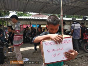 SERANG, bantenhariini.com – Sebagai bentuk rasa kepedulian terhadap sesama, sejumlah mahasiswa yang tergabung dalam Organisasi Aliansi Mahasiswa Peduli Bencana (AMPB) melakukan aksi galang dana untuk nelayan penyintas Tsunami Selat Sunda, di depan Kampus UIN SMH Banten, Jalan Raya Ciceri, Kota Serang, Jum’at (22/2/2019).