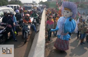 TANGERANG, bantenhariini.com – Lebih dari 1.000 orang peserta mengikuti Kirab Budaya Nusantara di perumahan Taman Cibodas, Kelurahan Sangiang Jaya, Kecamatan Periuk, Kota Tangerang, Minggu (9/7). Mereka melakukan pawai dalam rangka memperingati HUT Vihara Chi San Bio.
