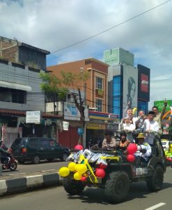 SERANG, bantenhariini.com – Kampanye Damai yang dilakukan KPU Kota Serang dengan 3 pasangan calon (Paslon) Walikota muter-muter daerah ibu kota tersebut berlangsung dengan meriah.