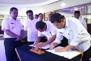 TANGERANG, bantenhariini.com – Bupati Pinrang Andi Aslam Patonangi menyatakan ketertarikannya kepada penggunaan aplikasi Tangerang Live oleh Pemkot Tangerang. Karena itu pihaknya ingin melakukan replikasi penggunaan teknologi informasi di Kota Tangerang untuk pengelolaan wilayah Kabupaten Pinrang. “Kami berterimakasih atas penandatanganan perjanjian kerjasama ini dan ingin segera mengembangkan e-government. Di sana, pengelolaanya masih konvensional,” kata Bupati, usai penandatangan kerjasama di Tangerang Live Room (TLR), Rabu (20/9).