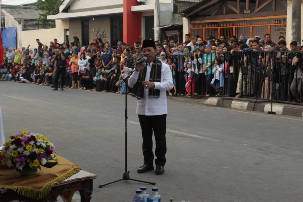TANGERANG, bantenhariini.id – Semarak Festival Cisadane menginjak hari terakhir setelah 10 hari berlangsung pada 26 Juli hingga 4 Agustus 2019. Ragam parade karnaval budaya mulai dari debus, tampilan busana aladin yang berkolaborasi dengan paskibraka, kerajaan ala arabian hingga atraksi budaya reog ponorogo mampu menghipnotis animo para pengunjung pada acara penutupan Festival Cisadane 2019 yang resmi ditutup oleh Wakil Walikota Tangerang Sachrudin yang didampingi jajaran Pemkot Tangerang bertempat di Bantaran Sungai Cisadane, Minggu (4/8).