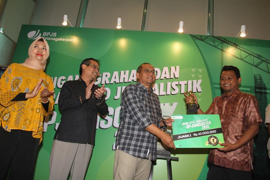 Dari hasil penjurian tersebut keluar sebagai juara pertama yaitu Mushaful Imam dari fornews.co dengan karya fotonya yang memperlihatkan para pekerja sedang melakukan perawatan jam raksasa yang terletak di atas tiang Jembatan Ampera, Palembang. Dalam captionnya, Mushaful menuliskan bahwa pekerjaan dengan tingkat risiko yang tinggi tersebut wajib memiliki perlindungan jaminan sosial dari BPJAMSOSTEK.