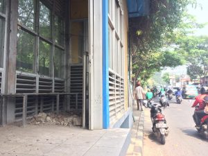 Akibatnya, banyak bagian halte yang terbuat dari material kaca yang pecah, banyak batu di dalam halte serta debu yang menumpuk. (Kurn)