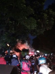 “Pas di pom bensi udah bau angus tadinya mau lihat di pom, takutnya ada apa apa makanya kita lari kesini berhenti langsung (Depan untirta-red) apinya langsung gede dan terbakar, uang 700 ribu hasil sekarang juga terbakar,” ungkapnya temui di lokasi, jum,at (22/12) malam.