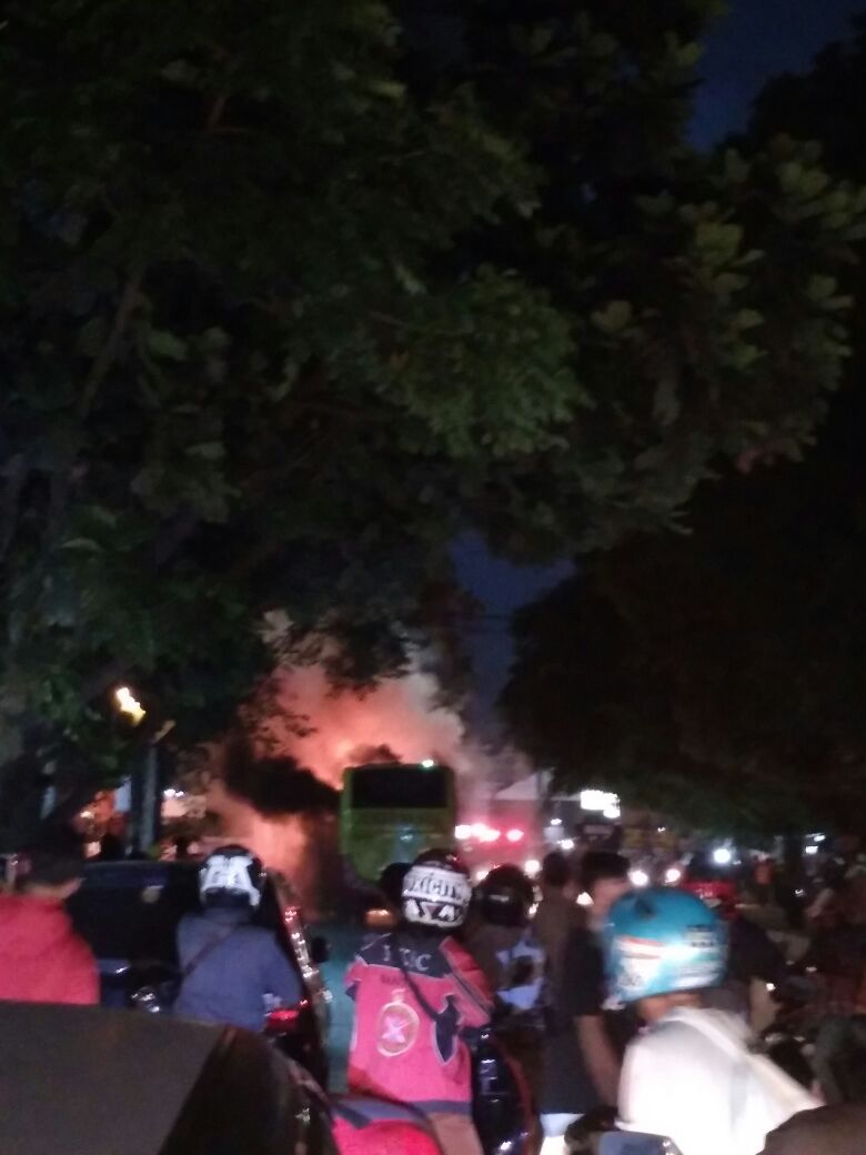 “Kejadian jam 19:00 penumpang ada puluhan, ada-anak ada ibu-ibu langsung keluar, pertama ada percikan api tidak lama kemudian penumpang keluar ada suara ledakan kaca sekali saja,” jelasnya.