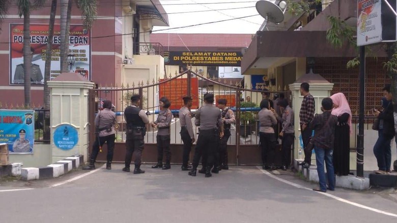 Hanya petugas kepolisian yang diperbolehkan masuk ke dalam Polrestabes. Jalan HM Said yang berada di sekitar Polrestabes Medan juga masih ditutup.