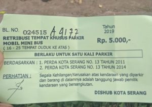 SERANG, bantenhariini.com – Menjamurnya parkir liar di Kawasan Kesultanan Banten dengan menggunakan karcis berlogo Dinas Perhubungan (Dishub) Kota Serang dinyatakan ilegal.