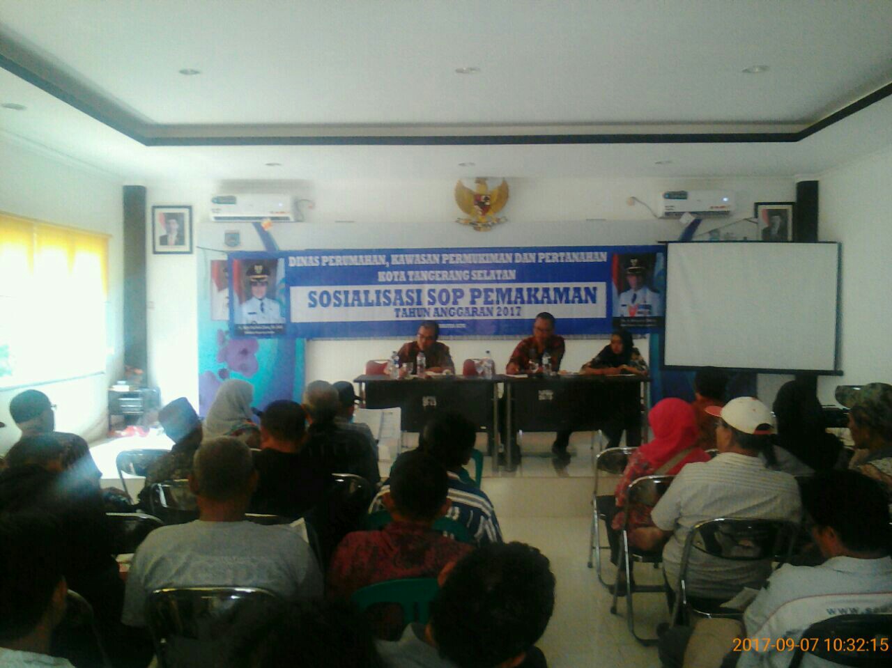 TANGERANG, bantenhariini.com – Dinas Perumahan, Kawasan Permukiman dan Pertanahan (DPKPP) Kota Tangerang Selatan menggelar Sosialisasi Standar Operasional Prosedur (SOP) Pemakaman di Kantor Kecamatan Setu, Tangerang, Kamis (7/9/2017).