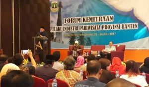 TANGERANG, bantenhariini.com – Memiliki potensi destinasi pariwisata yang menakjubkan, sektor pariwisata Banten dinilai sangat berpeluang dalam meningkatkan nilai jual produk pariwisata. Para pelaku industri pariwisata di Banten juga dikenal inovatif dan kreatif dalam menciptakan nilai tambah terhadap berbagai produk atau pelayanan pariwisata. “Sektor pariwisata berdampak positif terhadap perekonomian daerah. Pemprov Banten akan fokus membangun sektor pariwisata dengan mendukung para pelaku dalam melakukan kegiatan kepariwisataan daerah,” ungkap Gubernur Banten Wahidin Halim saat menghadiri Forum Kemitraan Pelaku Industri Pariwisata Provinsi Banten di Tangerang, Selasa (25/7).