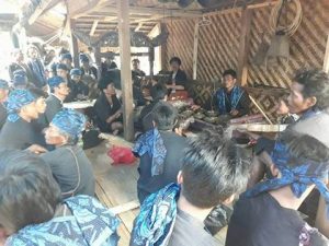 Hari ini mereka mengumpulkannya di kediaman Kepala Desa Kanekes, Jaro Saija, yang berada dekat pintu masuk objek wisata Baduy, Kadu Ketug, Ciboleger, Kanekes, Leuwidamar. “Baduy Luar yang mengenakan baju adat hitam-hitam dan ikat kepala biru selanjutnya bertolak naik angkutan umum dari terminal Ciboleger. Sementara orang-orang Baduy Dalam dengan baju dan ikat kepala putih tetap berangkat jalan kaki”.