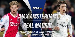 bantenhariini.com – Ajax Amsterdam akan menghadapi Real Madrid di leg pertama babak 16 besar Liga Champions di Stadion Amsterdam Arena, Kamis (14/2/2019) dini hari WIB. Berikut jadwal siaran langsung Ajax vs Madrid.