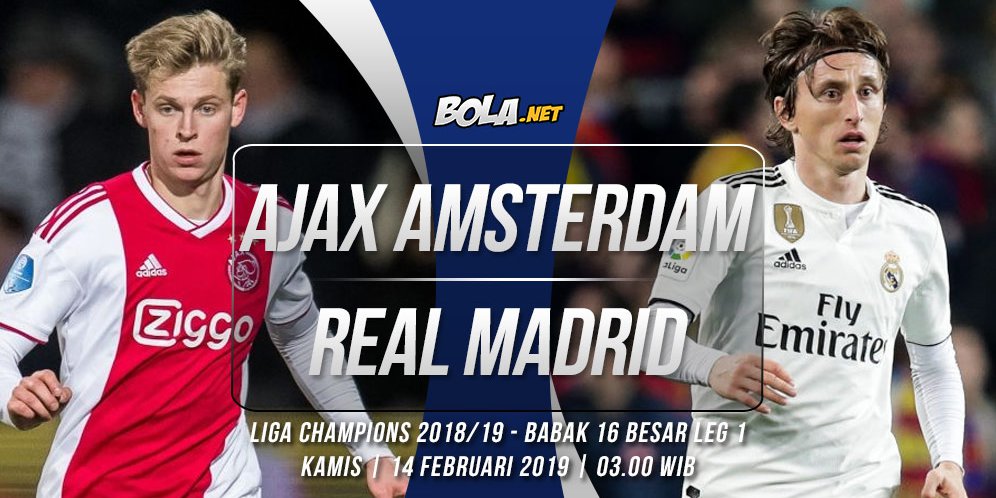 Pertandingan Ajax vs Madrid di laga pertama babak 16 besar Liga Champions akan disiarkan secara langsung oleh televisi nasional, RCTI, mulai pukul 03.00 WIB.