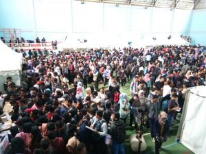 TANGERANG, bantenhariini.com – Ribuan pencari kerja dari berbagai wilayah di Kota Tangerang, memadati area Job Fair di GOR Kecamatan Jatiuwung, Selasa (20/1). Mereka memasukkan surat lamaran pekerjaan pada kegiatan yang digelar dalam rangka HUT ke 25 Kota Tangerang tersebut.