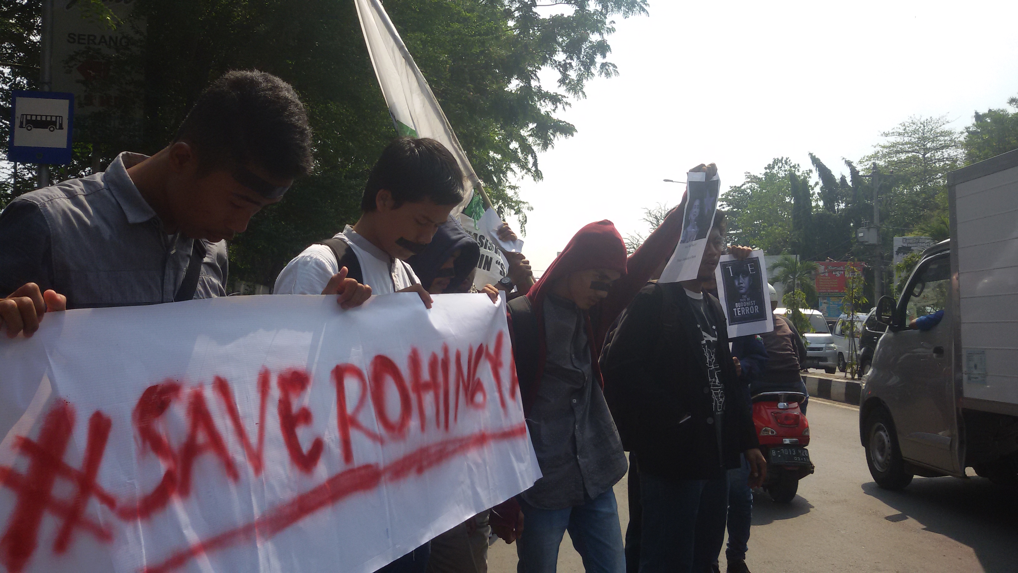 SERANG – bantenhariini.com – Kesatuan Mahasiswa Muslim Indonesia (KAMMI) Kota Serang melelakukan aksi dalam menegakan Hak Asasi Manusia (HAM) untuk kaum Rohingya di Myanmar, Kamis (7/9/2017) pukul 14.00 WIB di depan Kampus UIN Sultan Maulana Hasanuddin. Puluhan mahasiswa ikut serta dalam aksi tersebut.