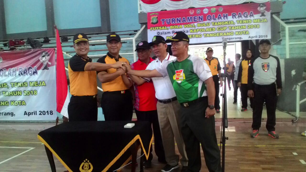 TANGERANG, bantenhariini.com – Puluhan tim dan atlet perseorangan dari wilayah hukum Polres Metro Tangerang dari cabang olahraga Futsal, Tenis Meja, Bulutangkis dan Bola Volley mengikuti turnamen Kapolres Cup 2018 yang dimulai hari ini dan dibuka oleh Kapolres Metro Tangerang, Selasa (3/4/2018).