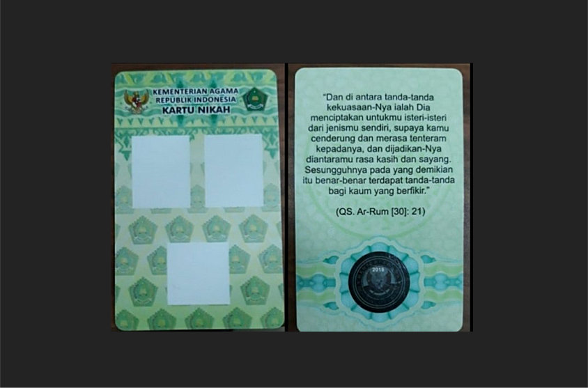 Dia mengatakan Kartu Nikah yang dikeluarkan Direktorat Jenderal Bimas Islam Kementerian Agama (Kemenag) memiliki warna dasar hijau dengan campuran kuning. Pada bagian atas kartu berkop Kementerian Agama.