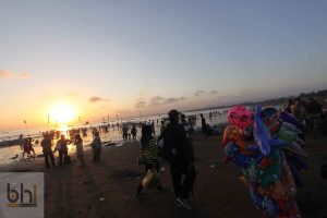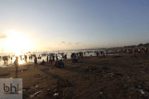 sementara orang-orang berlarian di Pantai