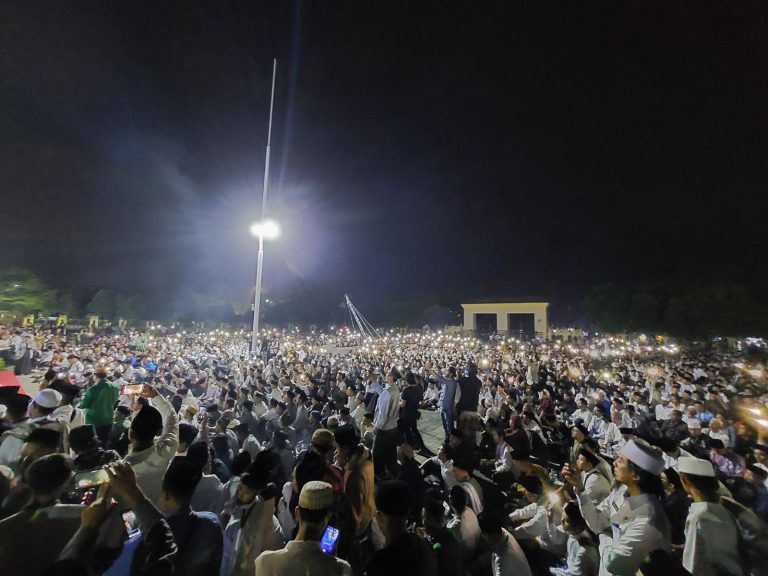 Masjid Raya Al Bantani menjadi saksi dari momen spiritual yang luar biasa saat peserta doa istighosah bersama-sama menyalakan kilauan cahaya senter yang memukau.