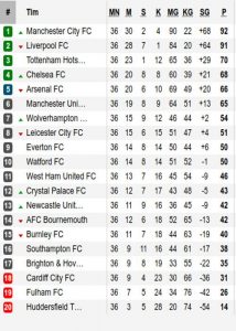 Klasemen Liga Inggris Pekan Ke-36