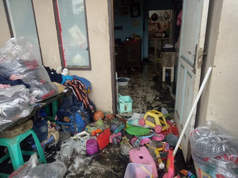 Yusy,37, warga perumahan Garden yang sudah mengungsi 5 hari di posko menangis saat pulang dan hendak merapikan rumahnya. Yusy mengatakan setiap tahun terkena banjir namun baru kali pertama merasakan banjir hingga setinggi atap rumah. Semua barang yang ada di rumahnya rusak dan tidak ada satupun pakaian yang bisa dipakai. “Penanganan dari pemerintah tahun ini terbilang lama, sampai berhari-hari belum juga surut. Jadi barang yang tadinya bisa bertahan jadi rusak total tidak ada sisa, ditambah di posko anak saya sakit nggak kebagian obat, ” ujarnya.