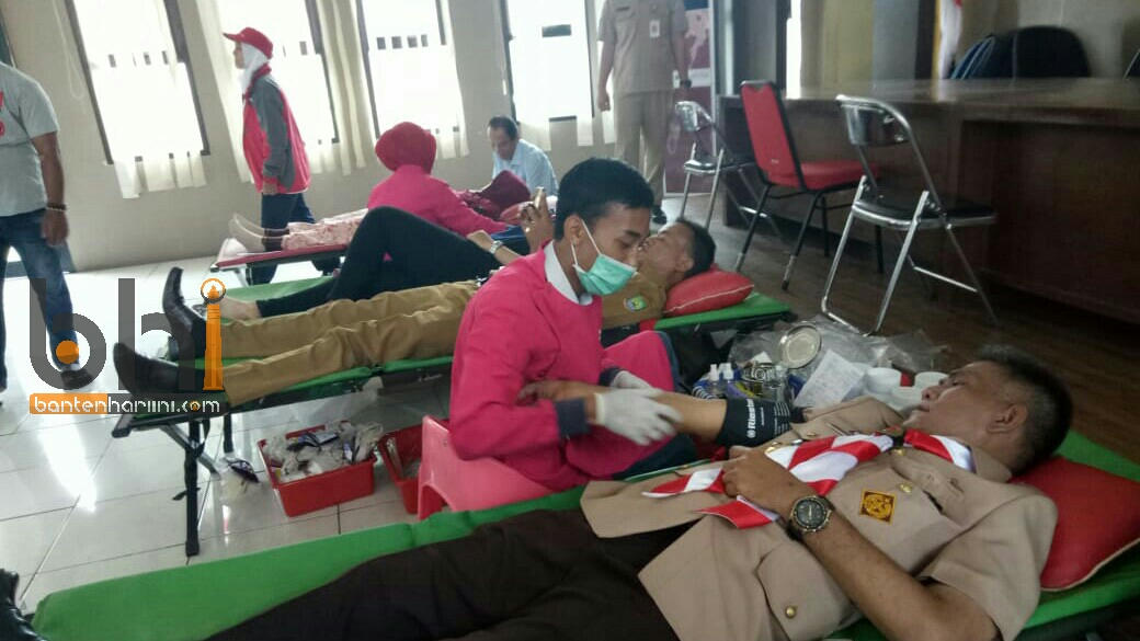 TANGERANG, bantenhariini.com – Ratusan masyarakat antusias melakukan donor darah di kantor Kecamatan Pinang, Kota Tangerang, Selasa (14/8/2018) pagi. Namun yang boleh mendonorkan darahnya hanya puluhan orang.