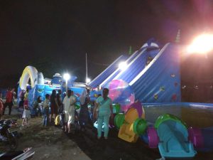 TANGERANG, bantenhariini.com – Puluhan pedagang pasar malam di Poris Indah Tangerang Kota mengaku mendapatkan keuntungan yang cukup meningkat. Terutama pedagang yang menyewakan permianan anak-anak, seperti permainan rumah balon, odong-odong, komedi putar dan lain-lain.