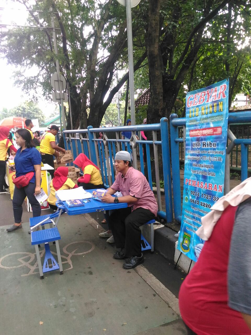 Terlihat sejumlah petugas dengan semangat berusaha menarik minat masyarakat yang sedang berolahraga di car free day untuk menjadi calon pelanggan PDAM TB Kota Tangerang.