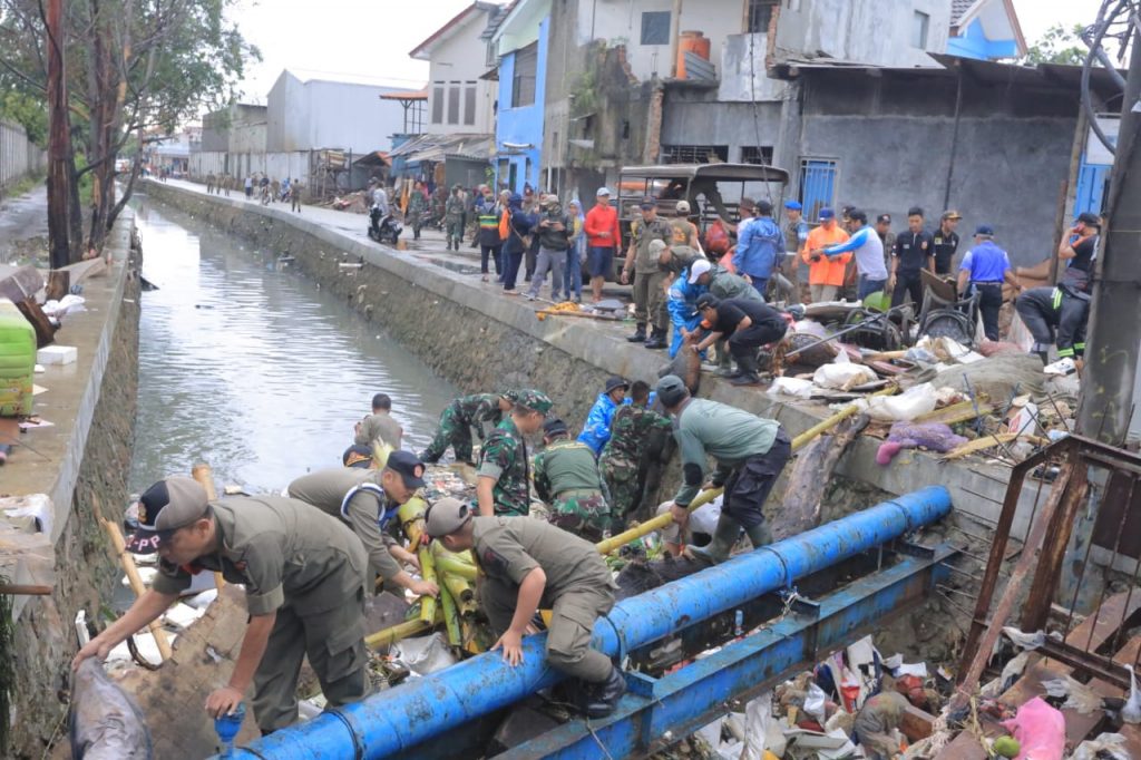 “Ayo semua personil bantu, jangan sampai ada sampah lagi yang menyumbat kali, yang dijalan-jalan juga tolong diangkut,” terangnya.