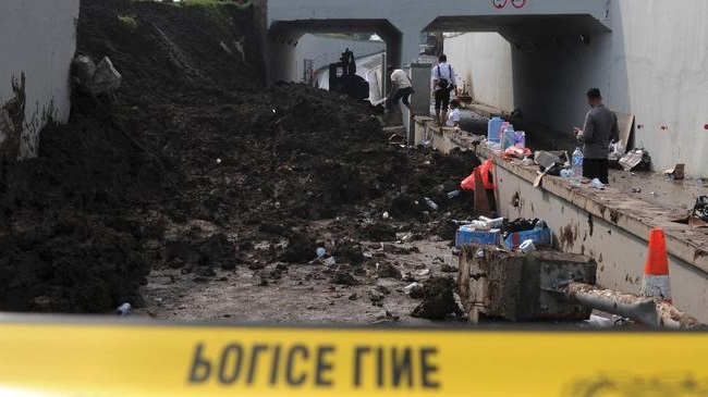 Akibat kejadian itu, Dyanti Dyah Ayu (24) meninggal dunia di RS Mayapada, Tangerang usai tertimbun materai longsor selama belasan jam. [ Ugo/CNN/Aep ]