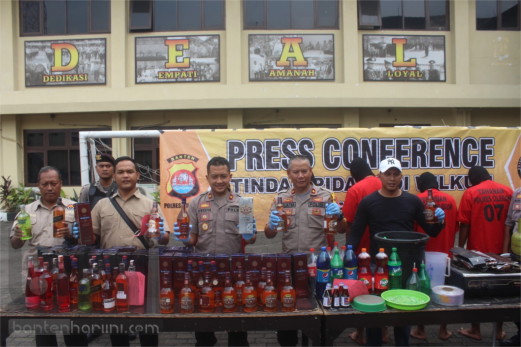 Fredya menjelaskan, berdasarkan pengakuan dari salah seorang tersangka mengatakan bahwa, kegiatan pengoplosan minuman keras tersebut sudah berlangsung selama 4 tahun dengan cara berpindah-pindah tempat pengoplosan minuman keras tersebut. “Para pelaku ini sudah melakukan aktifitas pengoplosanya sudah berlangsung selama empat tahun, namun tempatnya berpindah-pindah. Kadang di Serang, kadang di Cilegon,” terangnya.