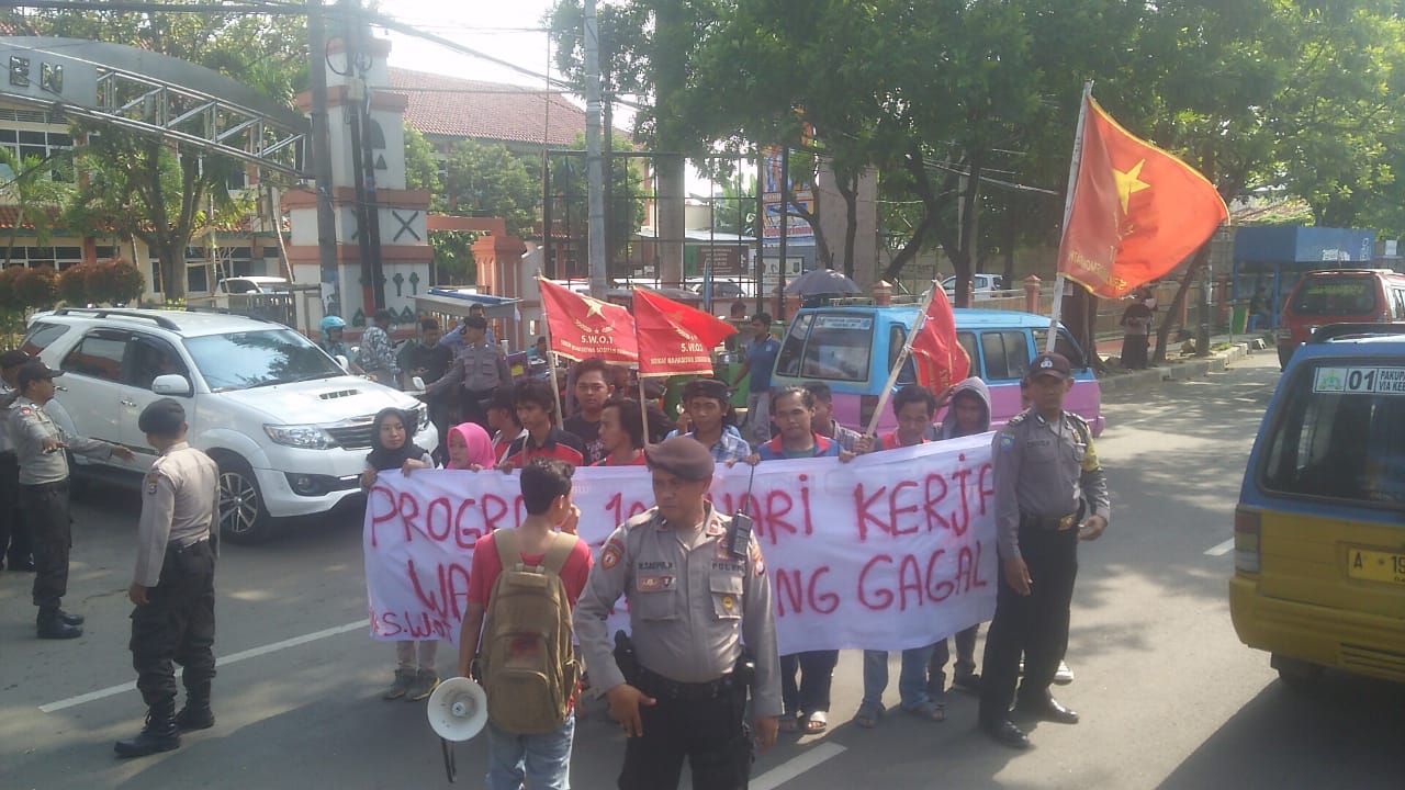 SERANG, bantenhariini.com – Menjelang akhir masa 100 hari kerja Walikota dan Wakil Walikota Serang diwarnai dengan aksi unjuk rasa dari puluhan Serikat Mahasiswa Sosialis Demokratik (SWOT), didepan kampus UIN “SMH” Banten, Jum’at (8/3/2019).