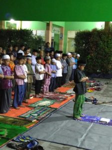 TANGERANG,bantenhariini.com-Ratusan siswa SD Muhammadiyah 30 Kota Tangerang menggelar salat malam di halaman sekolahnya, Kelurahan Poris Jaya, Kecamatan Batuceper, Kota Tangerang, Sabtu (3/2/2018) dini hari. Hujan deras yang terjadi malam itu mengiringi ibadah salat mereka sampai selesai.