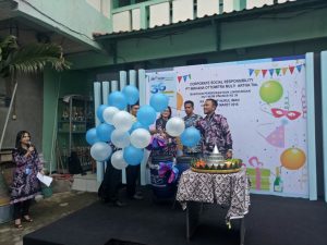 Kegitaan tersebut diawali dengan pemotongan tumpeng terlebih dahulu dan pemberian prasarana pendidikan hingga melandaskan balon di udara.