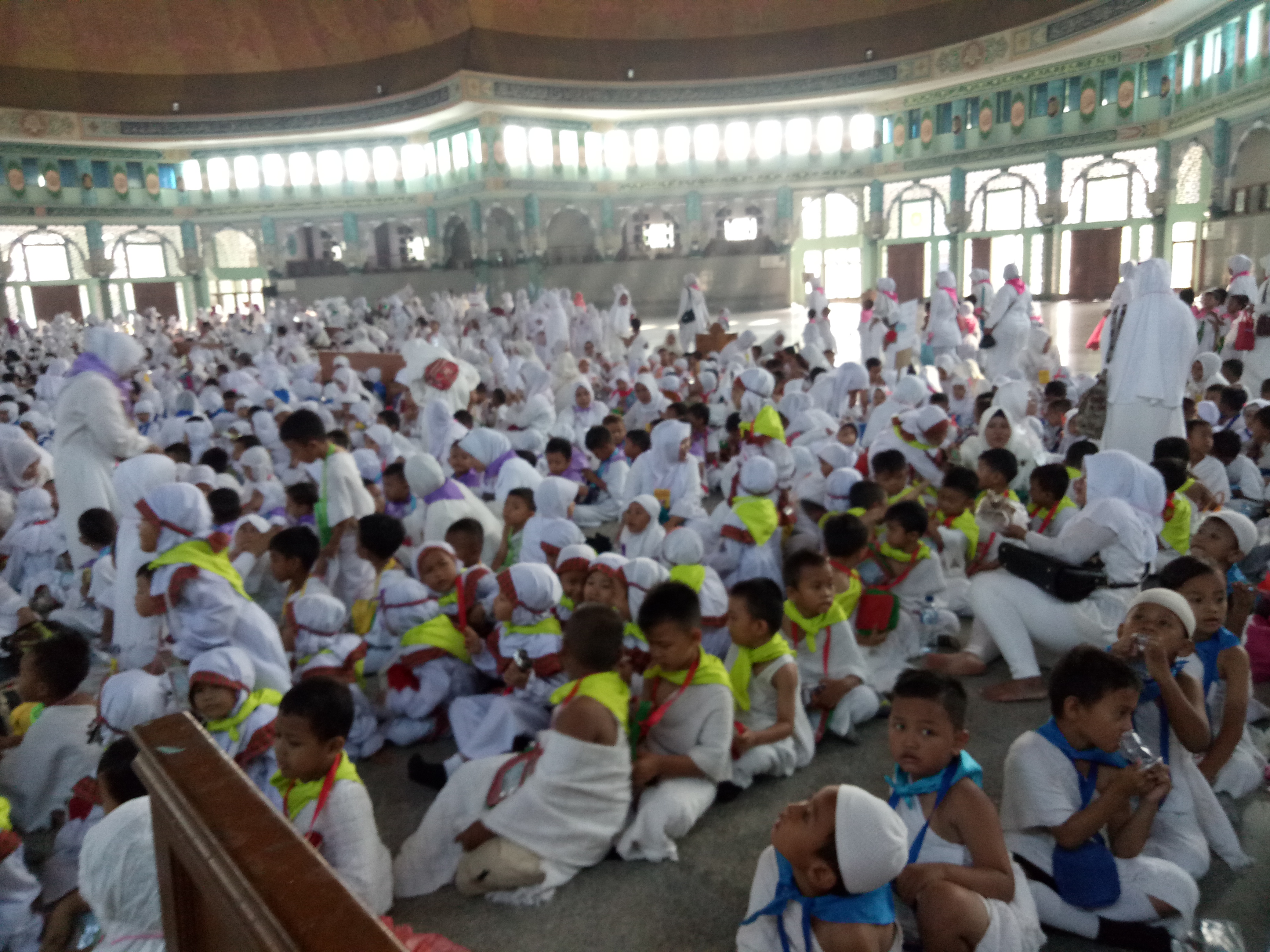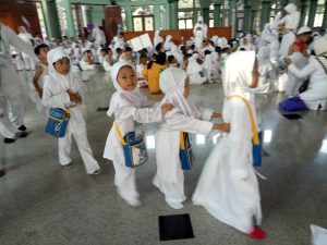 TANGERANG, bantenhariini.com – Ribuan murid Taman Pendidikan Al Quran (TPQ) dari 300-an TPQ yang ada di Kota Tangerang melakukan pelatihan manasik haji yang diselenggarakan Ikatan Pendidikkan Al Quran (IPQ) Kota Tangerang, di komplek Masjid Al- Azhom, Sukaasih, Kota Tangerang, Sabtu (16/9/2017). Jalanan sekitar masjid terbesar di Kota Akhlakul Karimah itu pun mendadak macet total.