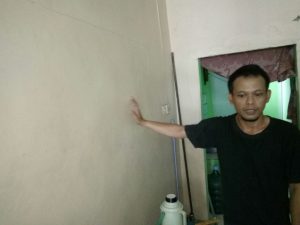 Tiba-tiba dinding rumah jebol dan air langsung memenuhi ruangan rumah. Perstiwa naas itu terjadi magrib dan membuat anggota keluarga panik. “Kejadiannya sekitar 5 bulanan lalu,” kata Rusli kepada bantenhariini.com, di tempat tinggalnya RT 02/06, Kelurahan Cipadu, Larangan, Kota Tangerang, Kamis (19/10/2017) sore.