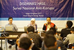 Peneliti Polling Center Prasna Fadhilla mengungkapkan, 92 persen masyarakat Banten melihat tidak ada perbaikan pada level korupsi dalam 1 tahun terakhir. “Pada tahun 2017, 54 persen responden menilai korupsi di Banten meningkat. Ini menjadi alarm untuk kita agar terus dapat melakukan kegiatan efektif dalam memberantas korupsi,” tambah Prasna.