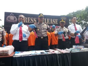 “Barang bukti yang disita berupa ganja 19,08 gram, sabu 128,08 gram, tembakau gorila 0,35 gram, pil tramadol 770 butir, eksimer 5.743 butir, dumolit 34 butir, alfazolam 30 butir dan rekona 24 butir,” kata Komarudin saat Jumpa Pers di Alun-alun Barat Kota Serang, Selasa (19/12).