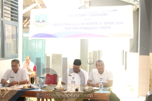 LEBAK BANTEN, bantenhariini.com – Program pendidikan grratis yang digulirkan oleh Pemerintah Provinsi Banten melalui Pergub No 31 Tahun 2018 Tentang Pendidikan Gratis SMAN/SMKN/SKHN diterima oleh pihak sekolah, komite, dan orang tua serta siswa di SMAN 1 Cilograng.