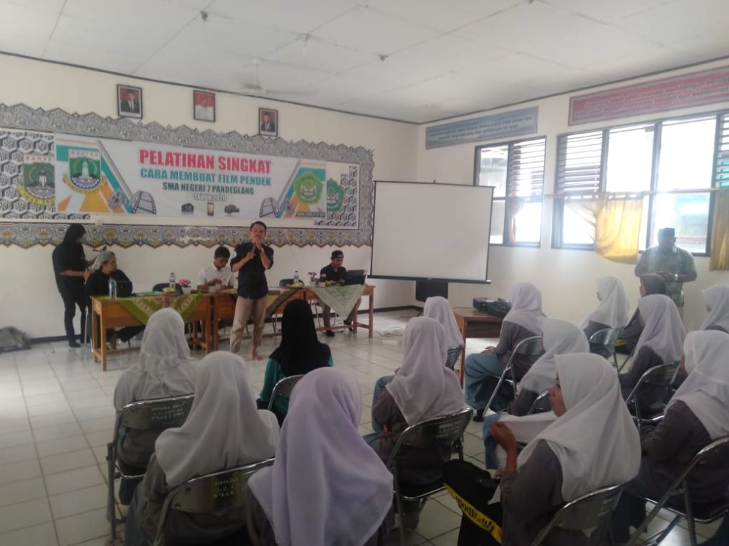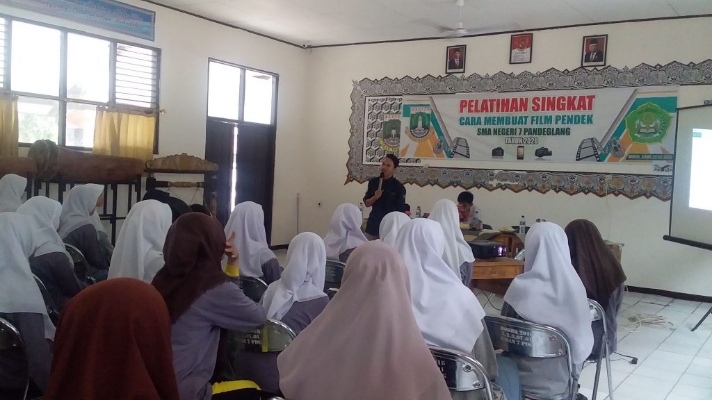 Menyampaikan secara detail teori dan teknik dunia cinematografy oleh Rozak, dan disambung oleh Materi Public Speaking oleh Faiz, para siswa SMAN 7 Pandeglang menyambut dengan antusiasme yang tinggi.