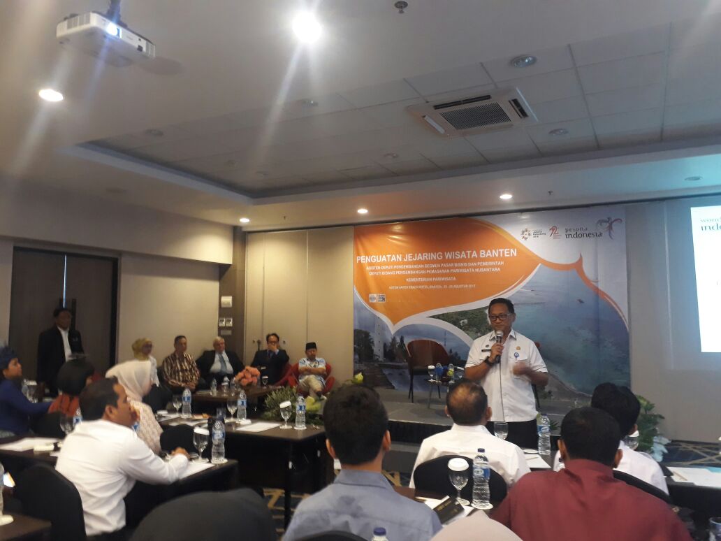 SERANG, bantenhariini.com – Kementerian Pariwisata (Kemenpar) RI terus menggenjot peningkatan daya saing pariwisata diberbagai daerah, salah satunya Provinsi Banten dengan melakukan berbagai cara, salah satunya memperkuat jejaring wisata yang ada di Provinsi Banten. Tim Pokja Destinasi Prioritas KEK Tanjung Lesung Kementrian Pariwisata Ida Irawati mengatakan, penguatan jejaring wisata perlu dilakukan agar daya saing pariwisata terus mengalami peningkatan, serta mempu mendongkrak angka kunjungan wisatawan baik nusantara maupun mancanegara.