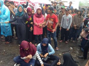 Pantauan di lokasi, walaupun dalam aksi tersebut di guyur hujan deras, ratusan pendemo itu pun tetap semangat.