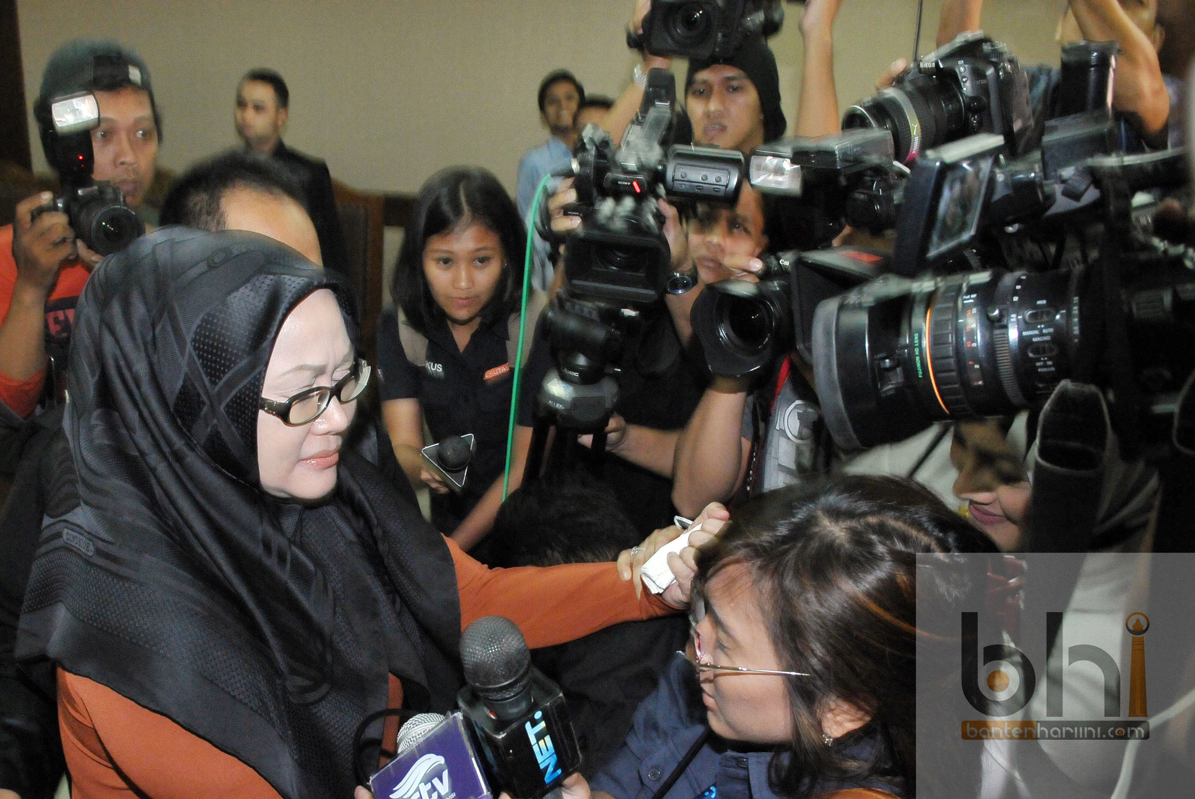TANGERANG, bantenhariini,com – Vonis pidana penjara selama 5 tahun 6 bulan dengan denda 250 juta terhadap Ratu Atut Chosiyah dalam kasus Alat Kesehatan (Alkes) Provinsi Banten, dinilai masih belum memenuhi rasa keadilan di masyarakat. Alasannya, vonis tersebut lebih ringan dari tuntutan Jaksa KPK yang meminta agar Atut divonis 8 tahun penjara ditambah denda Rp250 juta subsider 6 bulan kurungan. “Semestinya vonis yang diputuskan hakim lebih berat, bila perlu melebihi dari apa yang dituntut JPU. Namun sepertinya hakim mempertimbangkan pledoi Atut yang menyatakan khilaf karena terlibat korupsi untuk keuntungan diri sendiri maupun orang lain,” ungkap Presidium Banten Bersih Gufroni.