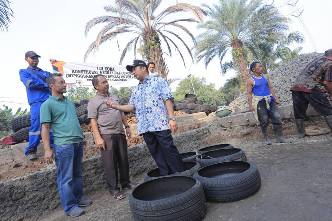 TANGERANG, bantenhariini.com – Wali Kota Tangerang Arief R Wismansyah punya cara sendiri untuk mengatasi jalan yang kerap kali rusak meski beberapa kali diperbaiki lantaran seringnya truk bertonase besar melintasi jalan tersebut. Penggunaan ban bekas untuk melapisi jalan menurut Arief dapat membuat kondisi aspal lebih elastis dan tidak mudah rusak. Meskipun kena hujan, panas dan terlintas truk bertonase berat sekalipun.