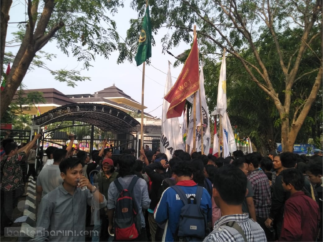 SERANG, bantenhariini.com – Ratusan Mahasiswa yang tergabung dalam organisasi Gerok (Gerakan Empat Oktober) dan Organisasi Banten Bersih menilai Gubernur Banten, Wahidin Halim dan Wakil Gubernur Banten, Andika Hazrumy tidak menepati janji-janji politik untuk masyarakat.