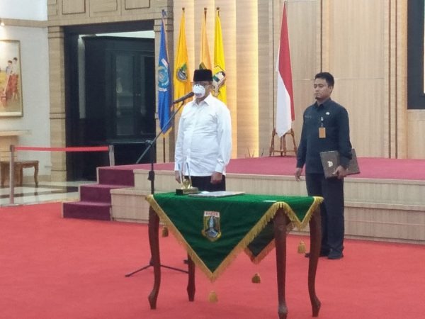 SERANG, bantenhariini.id – Gubernur Banten Wahidin Halim atau kerap disapa WH tampak mencolok saat melantik pejabat sekelas Eselon II di lingkungan Kawasan Pusat Pemerintahan Provinsi Banten (KP3B) siang tadi (03/03/2020).